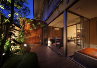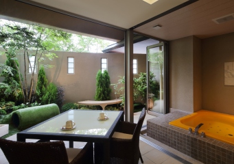 愛犬も楽しめるプライベートガーデンや、お庭と室内を繋ぐ半屋外の空間でケージの代わりなど様々に活用いただける”Dogサバトリ―”、客室露天エアブローバスを備えた贅沢空間です。